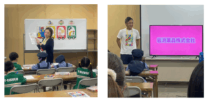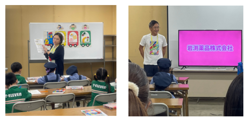 子どもたちはセブンーイレブン・ジャパンおよびイトーヨーカドーの店舗ユニフォームを着用し、イトーヨーカドー1階入り口で試食販売を体験しました。