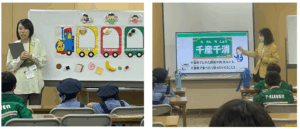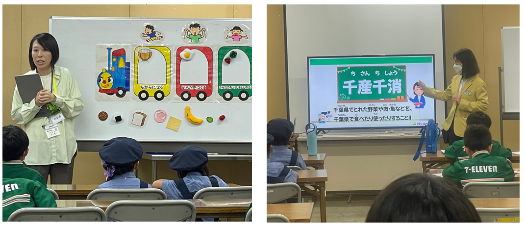 子どもたちは「共食」や「からだが元気になる食事」、「千産千消」について学んだ後、千葉県産の食材を使った商品を試食しました。