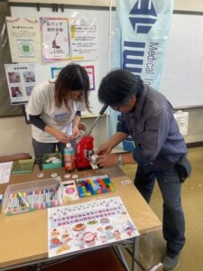 四つ葉プロジェクトのブースでは、来場者が好きな野菜や食に関する絵などを描き、その場でオリジナル缶バッチに仕上げる「缶バッチ製作体験」を実施しました。また、他の出展団体にはプロジェクトの趣旨を説明したステッカー(活動報告書約40部)を配布し、来場者には四つ葉プロジェクトのロゴステッカー(約100枚)を配布しました。子どもから大人まで幅広い来場者が参加し、絵を描く様子をきっかけに、簡単な会話が自然に生まれました。短時間の体験を通じて、訪れた人とスタッフとの間に小さな交流が生まれ、四つ葉プロジェクトが大切にしている「緩やかなつながりづくり」を実感できる場となりました。当日は、四つ葉プロジェクトのブースで50名の方に体験いただきました。