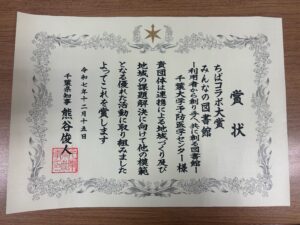 他のモデルとなるような優れた連携事例を表彰し、連携の重要性や効果を広く県民にお知らせすることで、連携による地域づくりの促進を図る目的で実施されている第15回「ちばコラボ大賞」 で千葉大学予防医学センターが参画する四街道市立図書館の取組が千葉県知事賞受賞を受賞し、12月15日に授賞式に中込准教授と井手特任助教が出席しました!